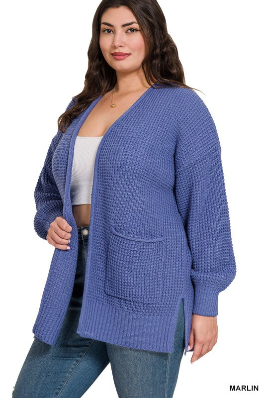 PLUS LOW GAUGE WAFFLE OPEN CARDIGAN SWEATER - RELAXED FIT - LOW GAUGE MIDWEIGHT - GOOD QUALITY TOTAL BODY LENGTH : 29.5", CHEST: 50" approx. - MEASURED FROM 1X * COLOR MAY VARY SLIGHTLY DUE TO MONITOR RESOLUTION
