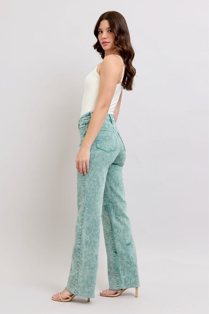Pair these adorable, raw hem, garment dyed, high waisted, Judy Blue dad jeans with your favorite top for a stylish look this spring!