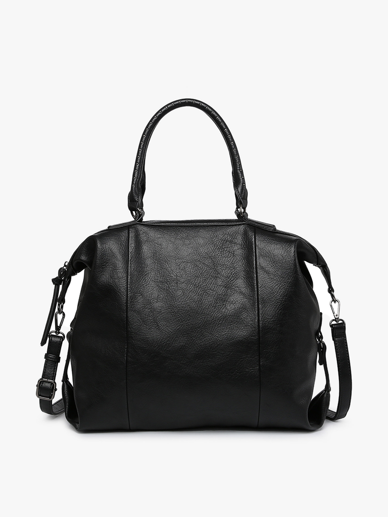 Indy Rustic Dual Handle Tote with Strap -Type: Rustic-style tote -Handles: Dual handles with grommet accents -Strap: Adjustable/removable crossbody strap -Interior: Inner slip and zip pockets, inner zip compartment -Closure: Top zipper closure -Pockets: Back zipper pocket -Material: Vegan leather Dimensions: -Length: 13 inches -Height: 16 inches -Width: 5.5 inches The Indy Rustic Dual Handle Tote with Strap offers a blend of rustic charm and modern functionality in a versatile design.Crafted in a rustic style, this tote features dual handles with grommet accents, adding a touch of rugged elegance to the overall look.